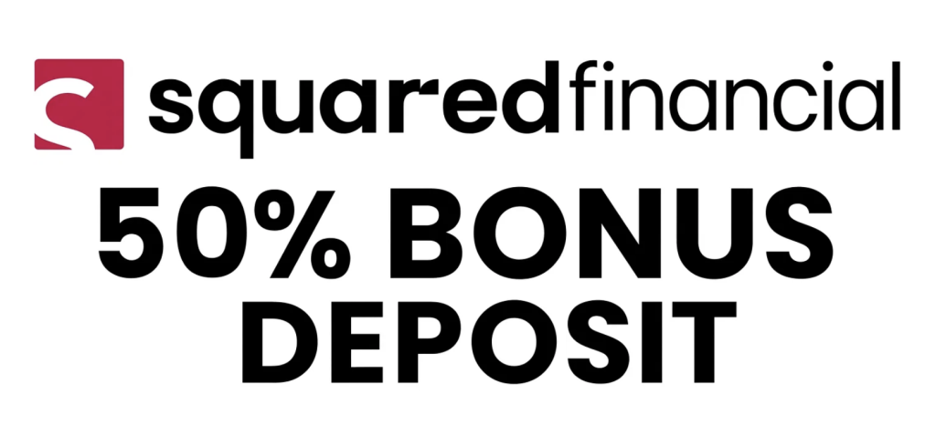- First Deposit (new clients only): Min $50 on SquaredPro or $500 on SquaredElite → 50% bonus