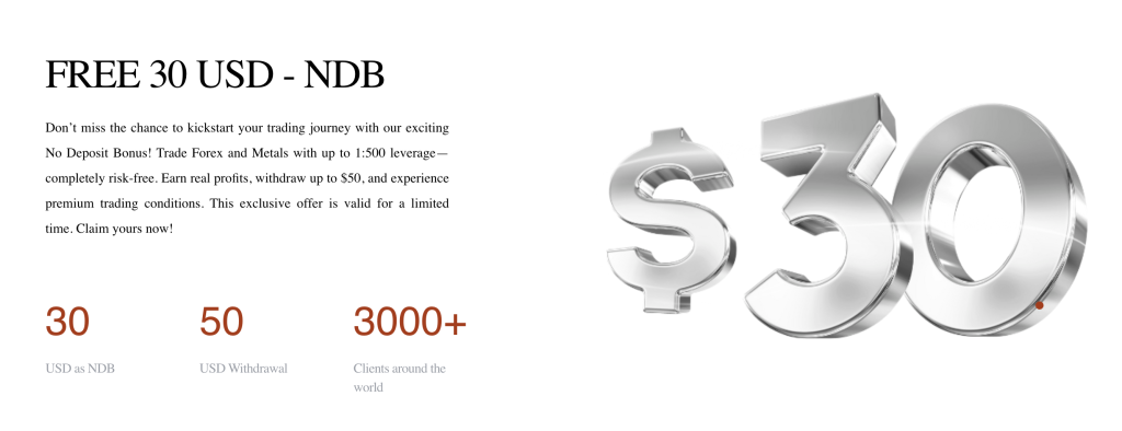 Get a Free $30 No Deposit Bonus and start trading without any upfront deposit. This promotion allows traders to trade Forex & Metals with up to 1:500 leverage and withdraw real profits up to $50. Full details & how to join available at MMOforALL.info — claim now before it expires!
